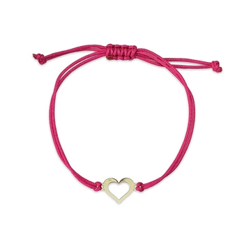 Bransoletka złota na sznurku Au 585 - kółko z wyciętym sercem