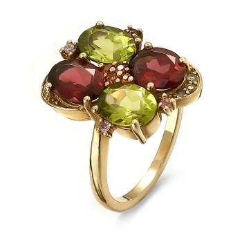 Pierścionek z szafirami mix, oliwinami i rodolitami