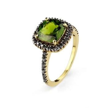 Pierścionek z turmalinem i czarnymi brylantami