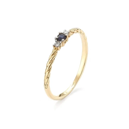Odkryj wyjątkowe piękno złotego pierścionka (próba 585) z szafirem i brylantami, który zachwyca swoją subtelną formą i olśniewającym blaskiem. Ten elegancki pierścionek to idealny wybór dla kobiet, które cenią sobie klasyczną biżuterię o ponadczasowym charakterze.