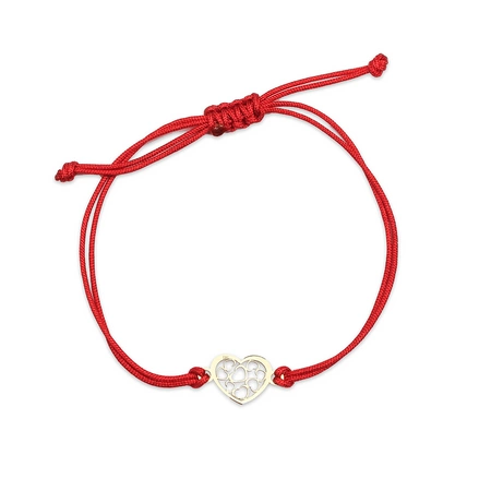 Bransoletka złota na sznurku Au 585 - ażurowe serce