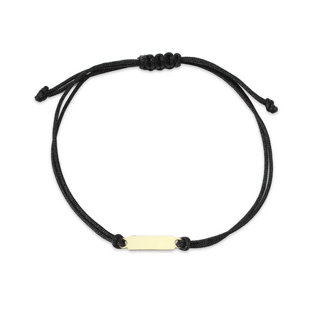 Złota bransoletka na sznurku to elegancki i stylowy dodatek, który może być zarówno prezentem, jak i osobistą pamiątką. Złoto to szlachetny metal, który jest ceniony za swoje piękno i trwałość. Bransoletka na sznurku z dodatkiem złota to idealny wybór dla osób, które chcą podkreślić swoją osobowość i wyrażać swoje uczucia. Bransoletka jest wykonana na czarnym sznurku, ozdobiona złotym elementem w kształcie blaszki. Została wykonana ze złota próby 585.