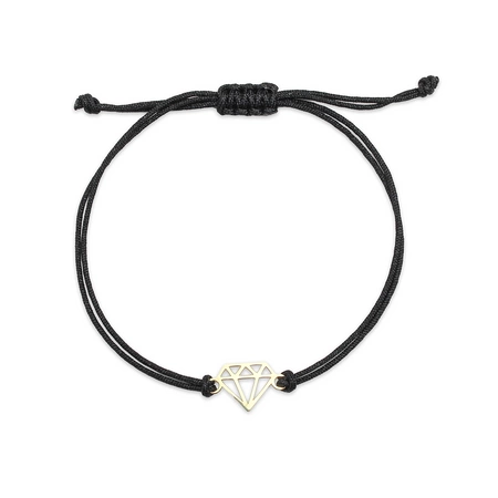 Złota bransoletka na sznurku z motywem diamentu to elegancki i stylowy dodatek, który zachwyca swoim blaskiem i szykiem. Została wykonana ze złota próby 585. Diamenty, najtwardsze kamienie szlachetne na świecie, symbolizują trwałość, wierność i czyste piękno, co czyni tę bransoletkę wyjątkowym i prestiżowym dodatkiem. Bransoletka na sznurku z motywem diamentu jest regulowana, dzięki czemu można ją dopasować do każdego nadgarstka. Jest to idealny wybór dla kobiet, które cenią elegancję i szyk.