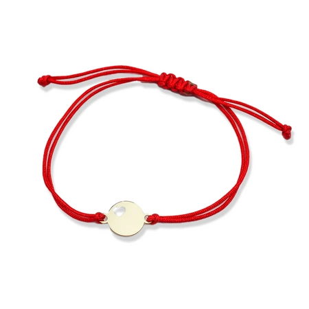 Bransoletka złota na sznurku Au 585 - kółko z wyciętym sercem
