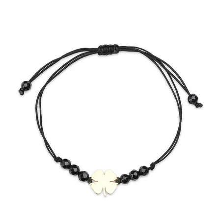 Bransoletka złota na sznurku Au 585 - koniczynka