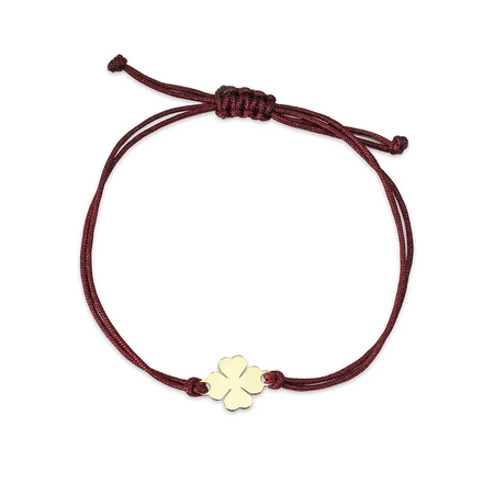 Bransoletka złota na sznurku Au 585 - koniczynka