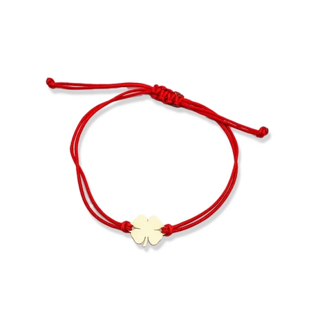 Bransoletka złota na sznurku Au 585 - koniczynka