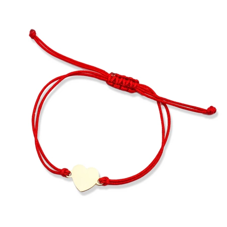 Bransoletka złota na sznurku Au 585 - złote serce