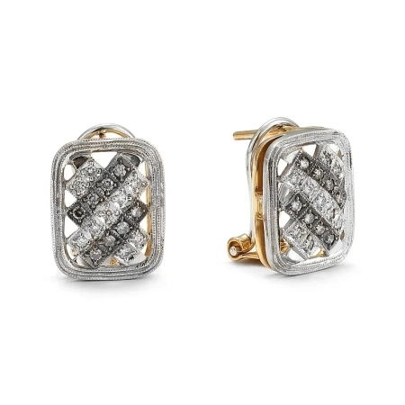 Złote kolczyki z brylantami i koniakowymi brylantami to połączenie elegancji i ciepłego blasku. Lśniące brylanty, jak iskry światła, harmonijnie współgrają z głębokimi koniakowymi brylantami, nadając biżuterii wyjątkowego charakteru. Złote oprawy delikatnie otaczają te szlachetne kamienie, dodając im subtelnego blasku. Te kolczyki emanują luksusem i są idealnym dodatkiem zarówno do wieczorowych kreacji, jak i codziennych stylizacji, dodając im nutę wyrafinowanego ciepła i elegancji. Kolczyki wykonane ze złota próby 585.