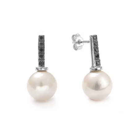 Kolczyki z perłą i czarnymi brylantami