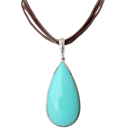 Przedstawiamy nasz wyjątkowy naszyjnik, który zachwyca naturalnym pięknem i subtelnym stylem. Centralnym punktem tej biżuterii jest efektowny kamień – intensywny turkus o kształcie łzy, umieszczony w eleganckiej oprawie.