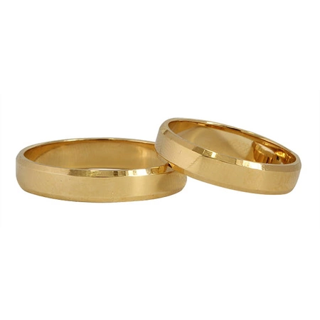 Złote obrączki ślubne z fazowanymi krawędziami to nowoczesny i elegancki wybór dla par, które szukają wyjątkowych i niepowtarzalnych obrączek. Ich cechą charakterystyczną jest ścięte krawędzie, które nadają im nowoczesny i elegancki wygląd. Obrączki wykonane są z wysokiej jakości złota. Fazy są tworzone przez usunięcie materiału z obrączki, co nadaje jej charakterystyczny wygląd.