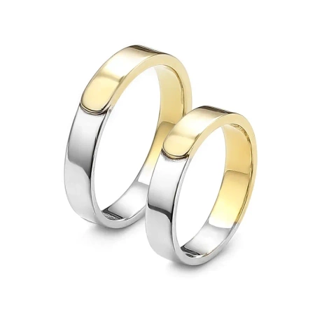 Obrączki są wykonane z żółtego i białego złota o próbie 585 i mają szerokość 4 mm. Mają gładką powierzchnię zewnętrzną i wewnętrzną, z delikatnym wzorem w formie fazy. Faza jest wykonana w taki sposób, że tworzy cienki, delikatny szew na powierzchni obrączek.