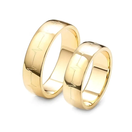Obrączki wykonane są z wysokiej jakości złota. Linia życia to wzór wytłoczony na powierzchni obrączki, który przypomina kształt zapisu EKG. Obrączki ślubne wykonane ze złota próby 585.