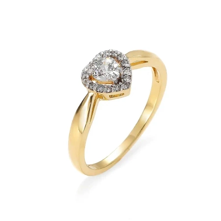 Złoty pierścionek z topazem i brylantami w kształcie serca – symbol miłości i blasku