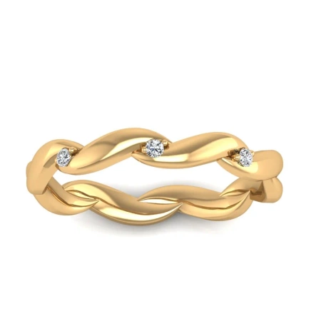 Pierścionek został wykonany z żółtego złota w próbie 585, jest ozdobiony 3 brylantami o łącznej masie 0,03 ct.