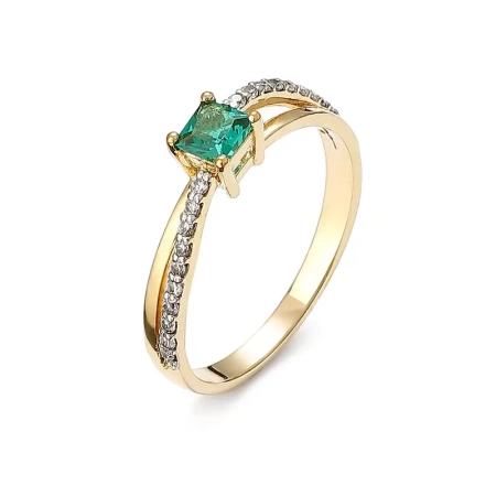 Centralnym punktem tego pierścionka jest kwadratowa, zielona cyrkonia, otoczona mieniącymi się bezbarwnymi cyrkoniami. Oprawiony w delikatne złoto próby 585, pierścionek zachwyca swoim blaskiem i elegancją.