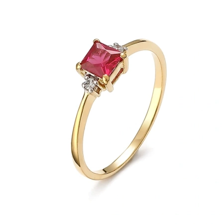 Centralnym punktem tego pierścionka jest kwadratowa, różowa cyrkonia, otoczona mieniącymi się bezbarwnymi cyrkoniami. Oprawiony w delikatne złoto próby 585, pierścionek zachwyca swoim blaskiem i elegancją.