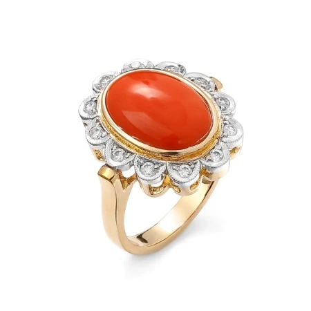 Pierścionek z koralem i brylantami