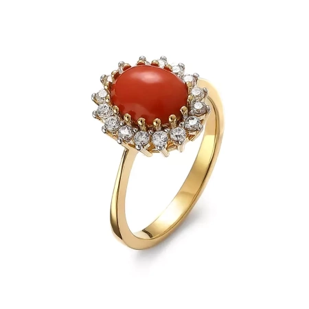 Koral otacza aureola z lśniących cyrkonii, które dodają pierścionkowi blasku i elegancji.