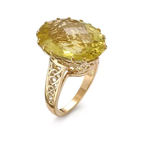 Kwarc cytrynowy otacza misterna, złota oprawa o ażurowym wzorze, która podkreśla jego piękno i dodaje pierścionkowi wyrafinowanego wyglądu.