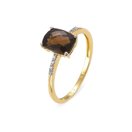 Złoty pierścionek (próba 585) z kwarcem dymnym i brylantami to nie tylko piękna ozdoba, ale również symbol siły i harmonii. To idealny wybór na specjalne okazje, jak i do noszenia na co dzień.