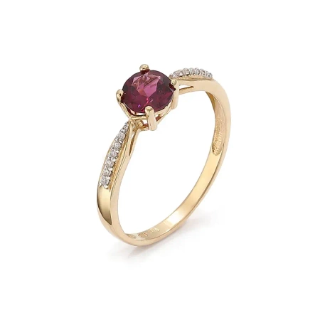 Złoty pierścionek z rodolitem i brylantami został wykonany z najwyższej jakości złota próby 585, co gwarantuje jego trwałość i piękny wygląd przez lata. Subtelna obrączka delikatnie oplata palec, zapewniając komfort noszenia.