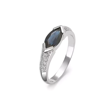 Brylanty, symbolizujące miłość, nadzieję i szczęście, pięknie podkreślają głębię koloru szafiru i dodają pierścionkowi blasku.