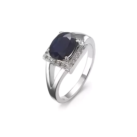 Centralnym punktem kompozycji jest szafir o głębokim, niebieskim kolorze, otoczony lśniącymi brylantami. Ten szlachetny kamień, symbolizujący wierność, prawdę i czystość, dodaje pierścionkowi królewskiego uroku.