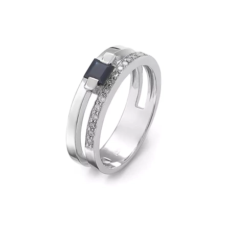 Centralnym punktem kompozycji jest szafir o głębokim, niebieskim kolorze, otoczony lśniącymi brylantami. Ten szlachetny kamień, symbolizujący wierność, prawdę i czystość, dodaje pierścionkowi królewskiego uroku.