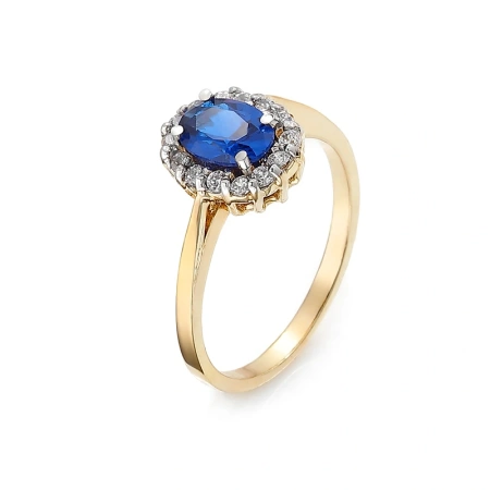 Złoty pierścionek z szafirem i brylantami – klasyczna elegancja w królewskim stylu