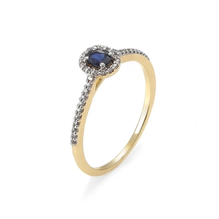 Brylanty, symbolizujące miłość, nadzieję i szczęście, pięknie podkreślają głębię koloru szafiru i dodają pierścionkowi blasku.