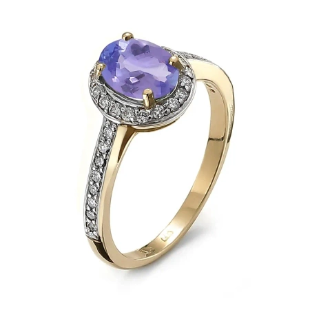 Złoty pierścionek z tanzanitem i brylantami – esencja elegancji i subtelnego blasku