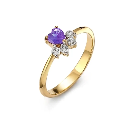 Centralnym punktem kompozycji jest tanzanit o intensywnym fioletowym kolorze, osadzony w ozdobnej oprawie. Ten szlachetny kamień, symbolizujący mądrość i duchową harmonię, dodaje pierścionkowi wyjątkowego charakteru.