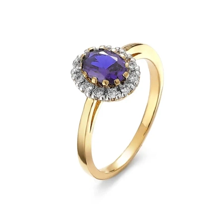 Złoty pierścionek z tanzanitem i brylantami – esencja elegancji i subtelnego blasku