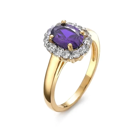 Centralnym punktem kompozycji jest tanzanit o intensywnym fioletowym kolorze, osadzony w ozdobnej oprawie. Ten szlachetny kamień, symbolizujący mądrość i duchową harmonię, dodaje pierścionkowi wyjątkowego charakteru.