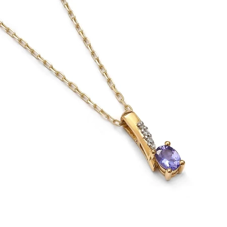 Złota zawieszka z tanzanitem i brylantami to piękny i elegancki dodatek, który może być noszony na co dzień lub na specjalne okazje. Tanzanit to kamień szlachetny o intensywnym, fioletowo-niebieskim kolorze, który kojarzy się z miłością, pasją i szczęściem. Brylanty to kamienie szlachetne, które kojarzą się z prestiżem i bogactwem.