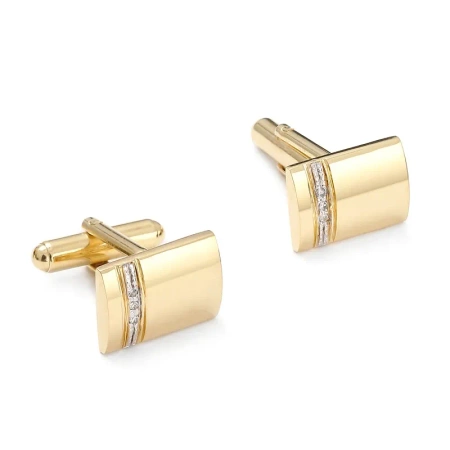 Podkreśl swoją elegancję z naszymi złotymi spinkami do mankietów z brylantami, wykonanymi z najwyższej jakości złota próby 585. Te wyjątkowe spinki to kwintesencja męskiego stylu, dodające blasku każdej stylizacji.