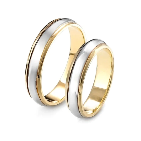 Obrączki ślubne z dwukolorowego złota z zaokrąglonymi krańcami to elegancki i stylowy wybór dla par, które szukają czegoś wyjątkowego. Ich cechą charakterystyczną jest połączenie dwóch kolorów złota, które nadaje im nowoczesny i elegancki wygląd. Obrączki wykonane są z wysokiej jakości złota. Krańce obrączek są zaokrąglone, co nadaje im płynny i harmonijny wygląd. Obrączki ślubne wykonane ze złota próby 585.