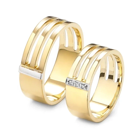 Obrączki ślubne złote emanują ponadczasową elegancją, dzięki czemu stanowią doskonały symbol miłości i oddania. Wykonane z najwyższej jakości złota, o szerokości 7 mm, te obrączki są zarówno wytrzymałe, jak i stylowe. Obrączka damska przyciąga wzrok delikatnym blaskiem, będącym wynikiem osadzenia 3 brylantów o łącznej masie 0,02 ct. Kamienie te, umieszczone z subtelną precyzją, dodają obrączce wyrafinowanego charakteru, jednocześnie zachowując jej klasyczną estetykę. Obrączka męska, gładka i pozbawiona zdobień, podkreśla męski charakter i siłę, będąc jednocześnie wygodną i praktyczną w codziennym noszeniu. Para ta, będąca połączeniem tradycji i nowoczesności, jest idealnym wyborem dla par, które cenią sobie zarówno jakość, jak i subtelną elegancję. Obrączki ślubne wykonane ze złota próby 585.