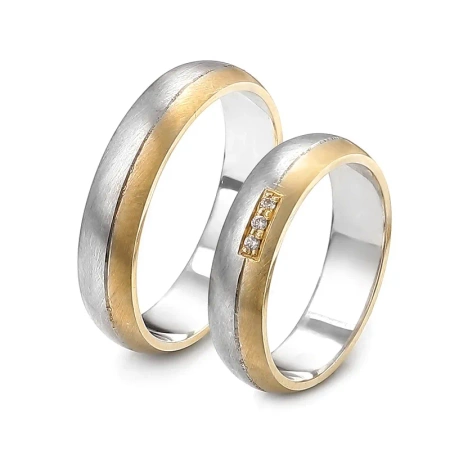 Obrączki Ślubne Złote o szerokości 5 mm. Obrączka damska to kwintesencja elegancji i subtelności. Wykonana z najwyższej jakości złota, o szerokości 5 mm, ozdobiona jest 3 lśniącymi brylantami o łącznej masie 0,03 ct. Każdy kamień jest precyzyjnie osadzony, co dodaje obrączce wyjątkowego blasku i luksusu. Obrączka męska, również o szerokości 5 mm, zachwyca swoją klasyczną prostotą i elegancją. Wykonana z tego samego szlachetnego złota co obrączka damska, stanowi doskonałe uzupełnienie i symbolizuje trwałość i niezachwianą miłość. Obrączki ślubne wykonane ze złota próby 585.