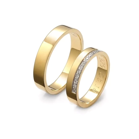 Obrączki są wygodne w noszeniu i będą służyć przez wiele lat. Płaski profil dodaje im elegancji i szyku. Brylanty dodają im blasku i wyjątkowości.