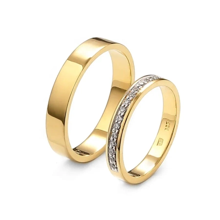 Obrączki są wygodne w noszeniu i będą służyć przez wiele lat. Płaski profil dodaje im elegancji i szyku. Brylanty dodają im blasku i wyjątkowości.
