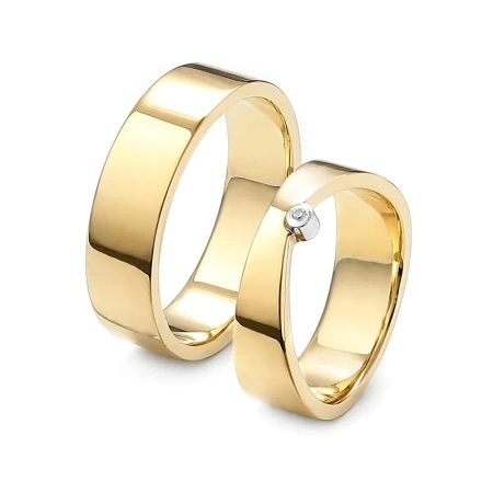 Obrączki ślubne o szerokości 6 mm z brylantem t to elegancki i nowoczesny wybór dla par, które szukają obrączek, które będą im służyć przez całe życie.