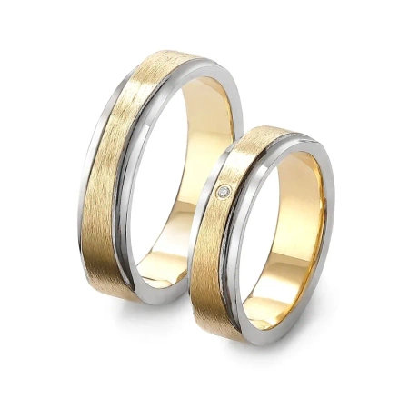 Obrączki mają szerokość 5 mm, co czyni je wyraźnym, ale zarazem subtelnym symbolem związku małżeńskiego. Obrączka ślubna damska jest ozdobiona małym, iskrzącym się brylantem. Brylant, będący symbolem trwałości i niezmiennego blasku, dodaje wyjątkowego charakteru tej obrączce. Ich klasyczny design sprawia, że są one ponadczasowym wyborem, który będzie świadczył o głębokim zobowiązaniu i miłości przez lata. Brylant o masie 0,01 ct pięknie komponuje się z ciepłym blaskiem złota, tworząc kompozycję pełną elegancji i klasy. Obrączki ślubne wykonane ze złota próby 585.