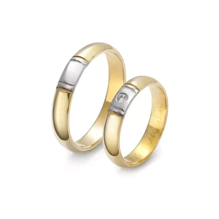 Obie obrączki są wykonane z żółtego złota próby 585. Obrączka męska o szerokości 4 mm zachwyca prostotą i klasycznym wyglądem, natomiast obrączka damska wyróżnia się delikatnym brylantem o masie 0,02 ct, który dodaje subtelnej iskry i blasku. Każda z obrączek została starannie wykonana, aby zapewnić wygodę i elegancję na co dzień, będąc pięknym przypomnieniem o Waszej wspólnej drodze. Obrączki ślubne wykonane ze złota próby 585.