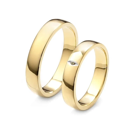 Złote obrączki ślubne o szerokości 4 mm. Obrączka damska jest wyjątkowa, gdyż posiada oprawiony jeden żółty szafir o masie 0,01 ct. Szafir, będący symbolem mądrości i dobrobytu, dodaje obrączce nie tylko piękna, ale i głębszego znaczenia. Delikatność kamienia w połączeniu z klasycznym złotem tworzy ponadczasową elegancję, która będzie przypominać o wyjątkowym dniu ślubu przez długie lata. Obrączki ślubne wykonane ze złota próby 585.