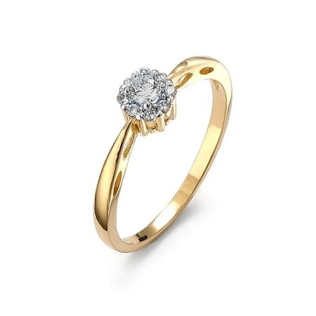 Pierścionek zaręczynowy został wykonany z żółtego złota w próbie 585, jest ozdobiony 9 brylantami o łącznej masie 0,18 ct.