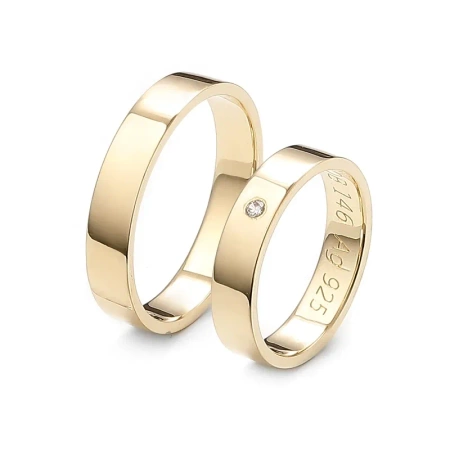 Obrączki ślubne z brylantem 0,02 ct to elegancki i klasyczny wybór dla par, które szukają obrączek ślubnych, które będą im służyć przez całe życie. Płaski profil nadaje obrączkom klasyczny i wyrafinowany wygląd. Jest również wygodny w noszeniu. Obrączki o szerokości 4 mm są eleganckie i subtelne, ale jednocześnie są trwałe. Brylanty dodają obrączkom elegancji i blasku. W tym przypadku damska obrączka jest oprawiona brylantem o masie 0,02 ct.