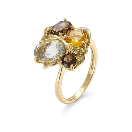 Pierścionek z kwarcem dymnym, ametystem zielonym i cytrynem